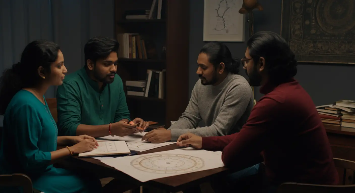 Explore authentic moments capturing traditional astrology, numerology, and Vaastu practices in an inviting atmosphere.